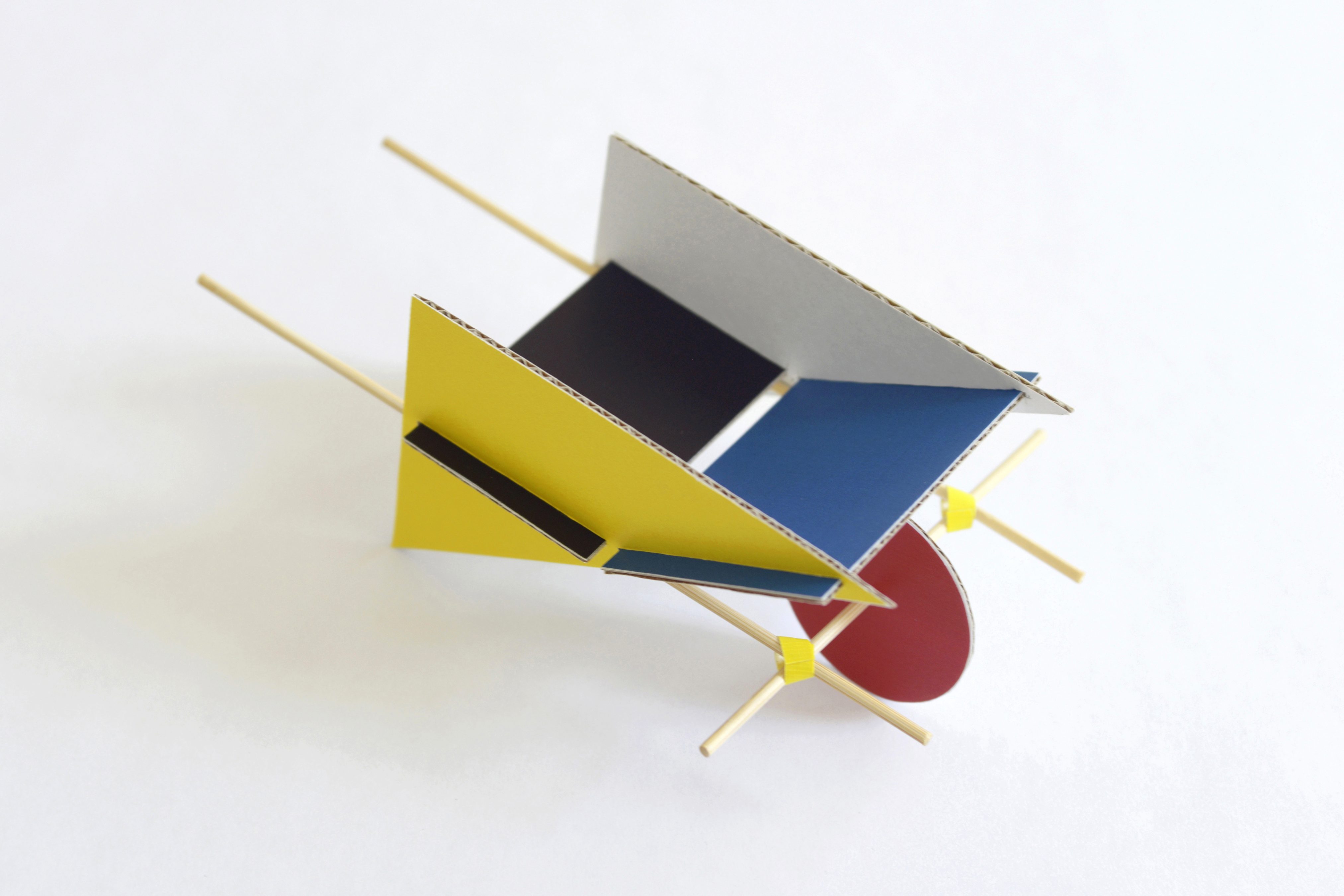 Gerrit Rietveld was a Dutch architect and designer. Influenced by the artists’ group De Stijl, he worked with geometric forms and the primary colours yellow, red and blue. His ideas were adopted by many at the Bauhaus. Using his “Child’s Wheelbarrow” (1923) for inspiration, you can build your own mini cardboard wheelbarrow and get triangles, rectangles and circles rolling.