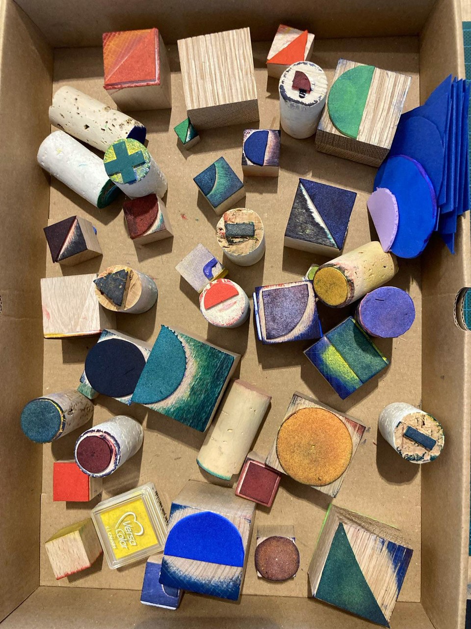 Wir experimentieren mit geometrischen Formen. Wir drucken Muster auf Postkarten und Plakate und ergänzen sie gegebenenfalls durch die Kombinationsschrift von Josef Albers. Wir erproben Größen und Farben, testen Kompositionen und entwickeln neue Kombinationen für eine modulare Schrift.